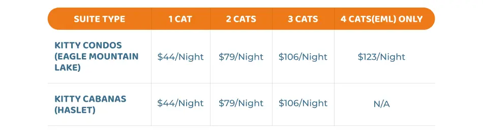Cats from the same household can share a condo at a discounted rate.